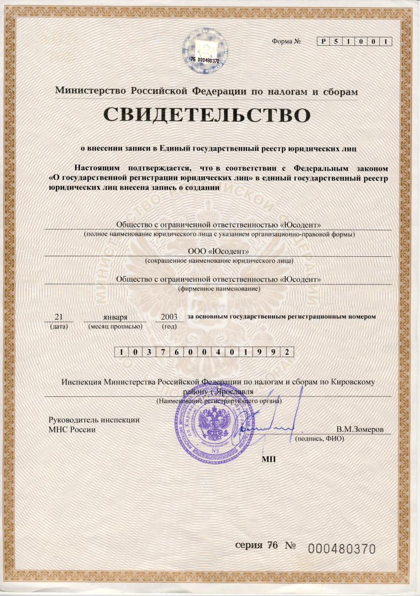 Свидетельство о регистрации